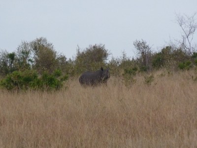 | A distant shot of the Black Rhino, a rare sighting. |